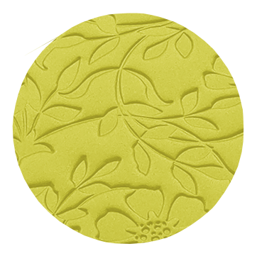 Varianta recyklované kůže Spectro zdobená renesanční květinovou arabeskou.